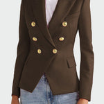 Impresiven sako s krojem, ki poudarja silhueto in izpostavlja stil. Ima eleganten rever, dvojno sprednje zapiranje z gumbi in dva stranska žepa s preklopom. Njegov brezčasni dizajn ga dela idealnega za poslovne priložnosti, kot tudi za večerne izhode, saj nudi samozavest in rafiniranost ob vsaki priložnosti.