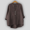 Lagana lanena bluza, ki združuje udobje in stil. Ima V-izrez s tremi gumbi in dolge rokave, ki jih je mogoče zavihati, kar ustvarja sproščen, a eleganten videz. Daljši zadnji del ponuja moderno linijo, idealno za vsakodnevne in sproščene kombinacije.