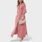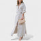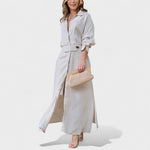Ta maxi obleka izžareva prefinjenost in preprostost, ter nudi eleganten videz za vsako priložnost. Z ženstvenim krojem in detajli, ki laskajo postavi, je popolna izbira za dnevne in večerne kombinacije. Udobna in moderna, poudarja naravno lepoto s pridihom sofisticiranosti.