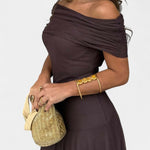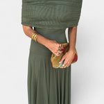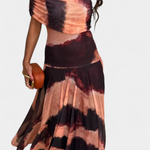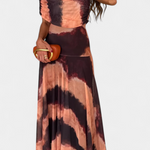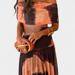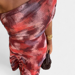 Umetniška silhueta, ki združuje modernost in ženstvenost. Renata se izstopa z dekoltejem z enim ramenom, ki s distinkcijo okvirja ključnico, ob tem pa ima lepršavo maxi krilo, ki prinaša eleganten gib. Njen tie-dye vzorec v toplih in blagih tonih ustvarja hipnotičen učinek, poln karakterja.