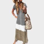 Ta zračna in udobna maxi obleka je popolna za tople poletne dni in sproščene trenutke. S svojim ležernim krojem nudi maksimalno udobje, medtem ko kombinacija barv daje moderen in boho videz. Idealna je za plažo, sprehode po mestu ali poletne izlete, enostavno se kombinira s sandali, klobukom in veliko torbo za popoln poletni stil.
