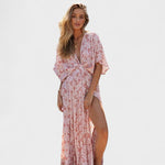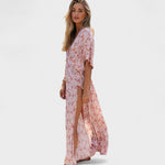 Vilma - Roza boho obleka s razporkom