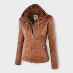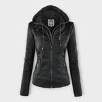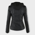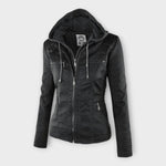 Moderna usnjena jakna s kapuco in brezčasno linijo