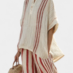 Sprostite se z morskim značajem. Obleka Daisy združuje široko bluzo z V-izrezom in široke hlače z vertikalnimi črtami, ki podaljšujejo silhueto. Njegov tekoč dizajn in tkaninski material ga naredijo idealno izbiro za uživanje v svetlih dneh s udobnostjo in stilom.