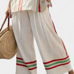 Sredozemni set Daisy iz bambusovega platna z elegantnimi rdečimi in zelenimi črtami
