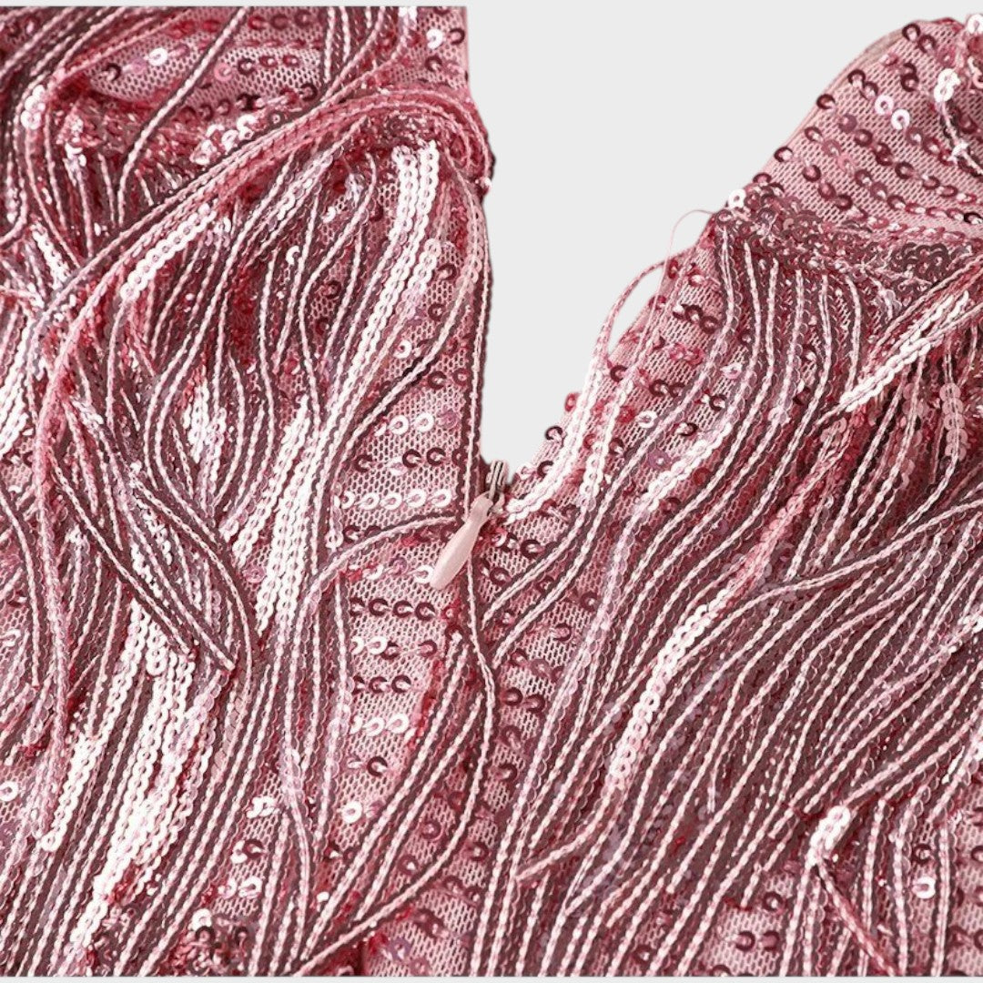 Obleka „Dora“ izžareva prefinjenost in stil. Oblikovana je tako, da poudari ženskost in eleganco ob vsaki priložnosti, še posebej na svečanih srečanjih in večernih zabavah. Zahvaljujoč preprosti, a kljub temu glamurozni kroju, se enostavno kombinira z nakitom in čevlji, kar ustvari popoln koktel videz.