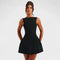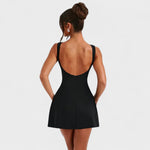Lepota postave – definirani pas in A-kroj vizualno podaljšujeta noge in ustvarjata uravnoteženo silhueto.