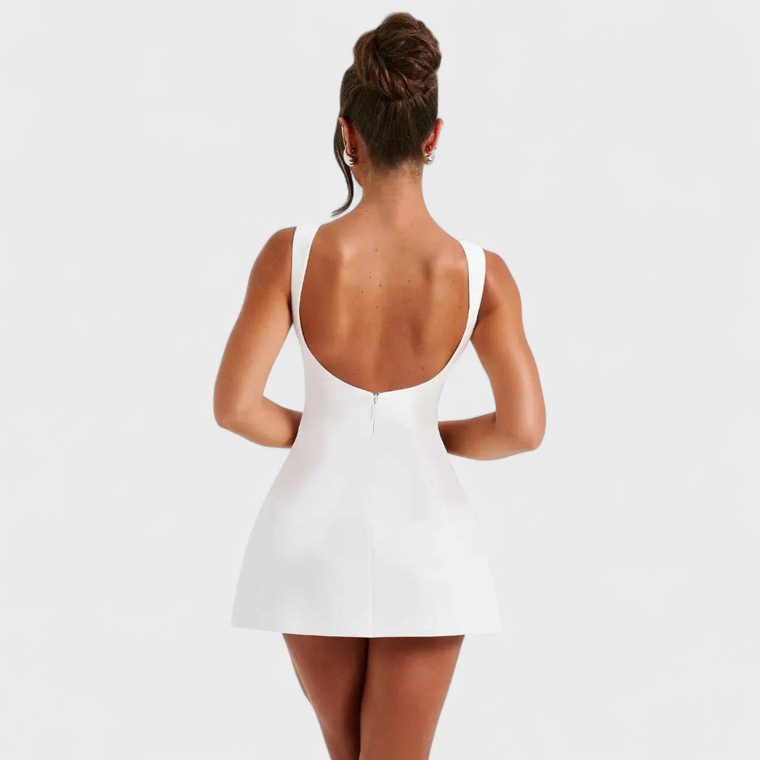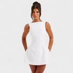 Elegantna haljina brez rokavov s prefinjenim lađa izrezom in strukturiranim zgornjim delom nežno poudarja ramena in pas. A-kroj krila ustvarja skladno silhueto in omogoča lepo gibljivost pri hoji in plesu. Prijetna, rahlo raztegljiva tkanina sledi liniji telesa in ohranja brezhiben videz od ceremonije do večernega izhoda. Idealna za poroke, sprejeme in vse posebne priložnosti.