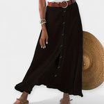 Zračna in elegantna, ta krilo izžareva subtilno ženstvenost in ponuja prilagodljivost za vsako priložnost. Z lahkotno prosojno tkanino in gumbi spredaj, se nosi od jutra do večera z ustreznim stiliziranjem.