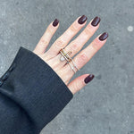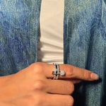 Naš posebni Monikos prstan je popoln dodatek za vsako obleko! Kombinacija 3 prstanov in sponke ga naredi pravo središče pozornosti.