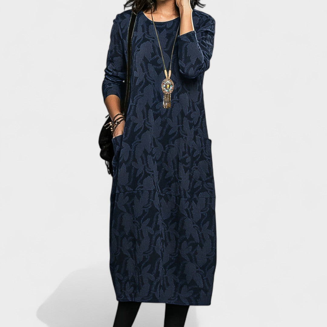 Ta jesenska obleka je popolna izbira za ženske, ki želijo združiti udobje in eleganco v vsakodnevnem slogu. Izdelana iz mehkega in toplega materiala, z dolgimi rokavi in praktičnimi žepi, nudi maksimalno udobje med hladnejšimi dnevi. Ohlapen kroj zagotavlja svobodo gibanja, diskreten vzorec pa doda kanček posebnosti. Idealna za sprehode, službo ali sproščena druženja.