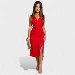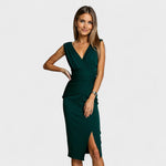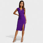 Ta obleka je popolna izbira za posebne priložnosti, ko želite zasvetiti. S prefinjenim krojem, ki poudarja pas in elegantnim razporkom, ki dodaja kanček senzualnosti, je idealna za večerne izhode, koktejl zabave ali svečane dogodke. Kombinirajte jo z visokimi petami in torbico za popoln glamurozen videz.
