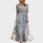 Ta midi obleka izžareva gracioznost in romantiko zahvaljujoč izpopolnjenemu kroju in lahkemu materialu, ki zagotavlja udobje čez ves dan. Cvetni vzorec prinaša svežino in posebno noto ženskosti, medtem ko praktične žepe naredijo popolno kombinacijo elegance in funkcionalnosti. Idealna je za sprehode, druženja ali posebne priložnosti, kjer želite zasijati z lahkoto.