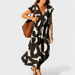 Odkrijte popolno ravnotežje med umetniško eleganco in sproščeno udobnostjo s to dolgo obleko, okrašeno z edinstvenim abstraktnim vzorcem. Idealna za vroče poletne dni, ponuja zračno prileganje in poseben stil v vsaki kombinaciji.