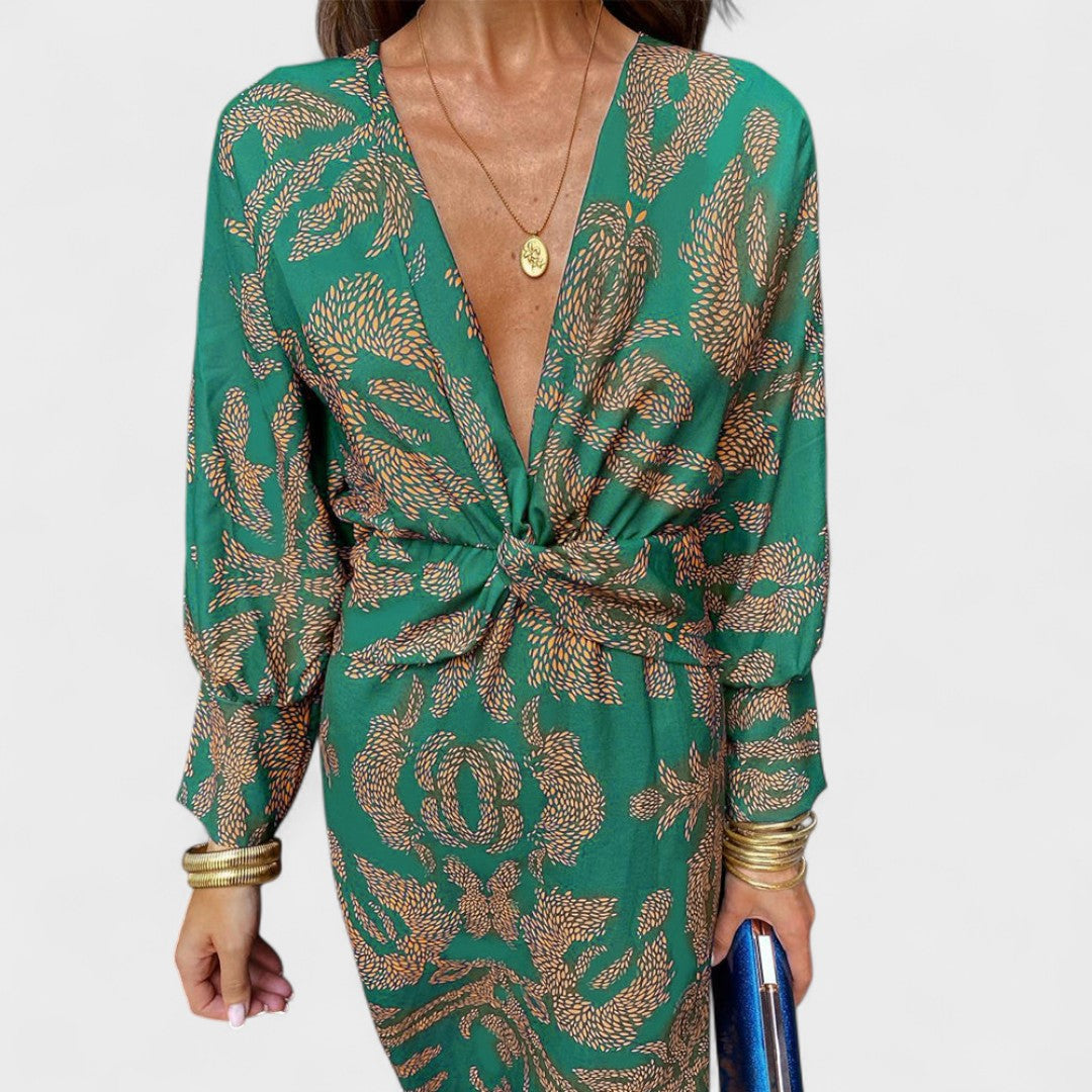 Vesna - Midi obleka z V-izrezom