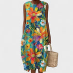 Ta lahka in zračna obleka popolnoma združuje stil in praktičnost, kar vam omogoča svobodo gibanja in sofisticiran videz ob vseh priložnostih. Njen sproščen kroj in cvetlični vzorec jo naredijo idealno izbiro za plažo, sprehod po mestu ali poletne srečanja.