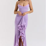 Impresivna in ženstvena obleka s prilagojenim krojem, ki oblikuje telo in poudarja silhueto. Detajli z volančki na dekolteju in krilu prinašajo pridih romantike in elegance. Idealna za večerne izhode in posebne priložnosti, ko želite biti v središču pozornosti.
