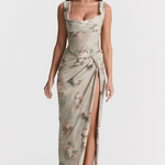 Impozantna in senzualna obleka, ki združuje eleganco s pogumno ženstvenostjo. Njena ozka silhueta objema telo, medtem ko razporek na nogi doda neustavljivo privlačnost. Idealna za večerne izhode in posebne priložnosti, ko želiš izstopati.