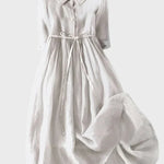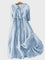 Ta nežna modra obleka izžareva mirnost in eleganco, idealna za vsako priložnost. Njena preprosta linija nudi udobje in brezčasni stil, medtem ko pas v pasu daje ženstveno silhueto s naravnim padcem tkanine.