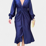 Časovna silhueta, ki združuje preprostost in izstopajočnost. Lena se izstopa z V-izrezom, ki podaljšuje in laskavi, visokim pasom, ki poudarja postavo, ter dolgimi rokavi, ki prinašajo ravnotežje in zadržanost. Njen monokromatski dizajn jo dela vsestranski kos za jesensko sezono, enostavno prilagodljivo različnim priložnostim.