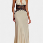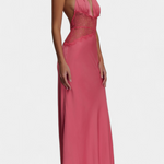 Martina Duga Haljina s Halter Izrezom i Prozirnim Čipkastim Strukom