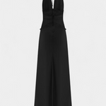 Globok halter izrez, ki stilizira in poudarja dekolte z eleganco