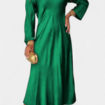 Elegantna, vsestranska in brezčasna, Martina haljina izstopa s svojo sofisticirano preprostostjo. Njena fluidna silhueta, V izrez in dolgi rokavi ustvarjajo oblačilo, ki se naravno prilagaja tako proslavam kot večerjam s sproščenim stilom.