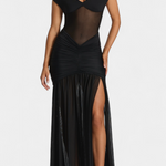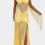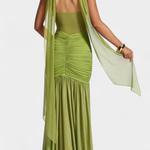 Elegantna zapeljivost v silhueti, ki teče s namenom. Obleka Milica se ponaša s svojo ultra mehko teksturo iz mlečne svile in nežnim sijajem, ki objame vsako krivuljo. Njen globok V izrez in nizka hrbtna stran ustvarjata podolgovato linijo, medtem ko strateško nabranje subtilno oblikuje. Visok razporek dodaja dotik rafinirane drznosti.