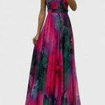 Antonija Maxi Obleka iz Šifona s Cvetnim Motivom in Halter Ovratom