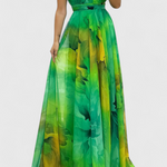 Maxi obleka iz šifona s cvetnim motivom, navdihnjena z romantizmom