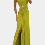 Emilija Maxi Obleka s Plisiranim Detalji in Bočnim Izrezom