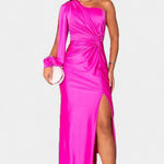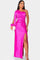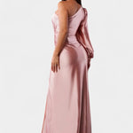 Obleči jo in začuti, kako te eleganca ovija, spreminjajoč vsak korak v izjavo čiste sofisticiranosti. Z asimetričnim izrezom, oblikovano draperijo in vezanim pasom, se Gabrijela giblje z lahkoto, da poudari tvojo postavo in pusti vtis na vsaki posebni priložnosti.