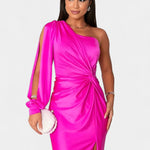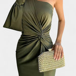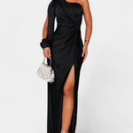 Gabrijela Asimetrična Oblačila z Draperijo na Enem Ramu