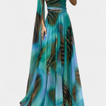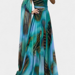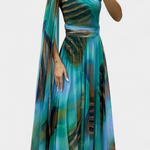 Romantična in sofisticirana, haljina Nives vnese skulpturalni in ženstveni duh zahvaljujoč izrezu z enim ramenom in drapirani rokavi. Nežna cvetlična aplikacija dvigne dizajn, medtem ko se maxi silhueta fluidno giba z gracioznostjo, ustvarjajoč nepozabno prisotnost na katerem koli dogodku. Izdelana iz mehkega in elegantnega materiala, uravnava udobje z rafinirano glamuroznostjo.