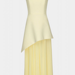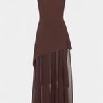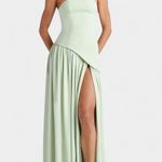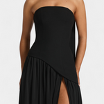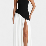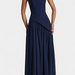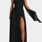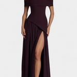 Sofisticirana in polna gibanja, obleka Rajna združuje strukturiran zgornji del z eterealno lahkotnostjo chiffona. Njen off shoulder izrez poudarja ženstvenost z rafiniranim dotikom, medtem ko dolga krila z bočnim raskorakom prinašajo dinamiko in zapeljivost. Oblikovana, da izstopa na elegantnih priložnostih, je to kos, ki naravno uravnava modernost in brezčasnost.