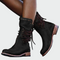 Ženski usnjeni škornji v sivi odtenku z vintage estetiko in ročno izdelanim značajem. Imajo vezalke za udobno prileganje, kovinske detajle na zgornjem delu in nizko leseno peto, ki zagotavlja udobje čez ves dan. Rahlo obrabljen dizajn jim daje edinstven slog, ki izstopa v vsaki casual ali boho kombinaciji.