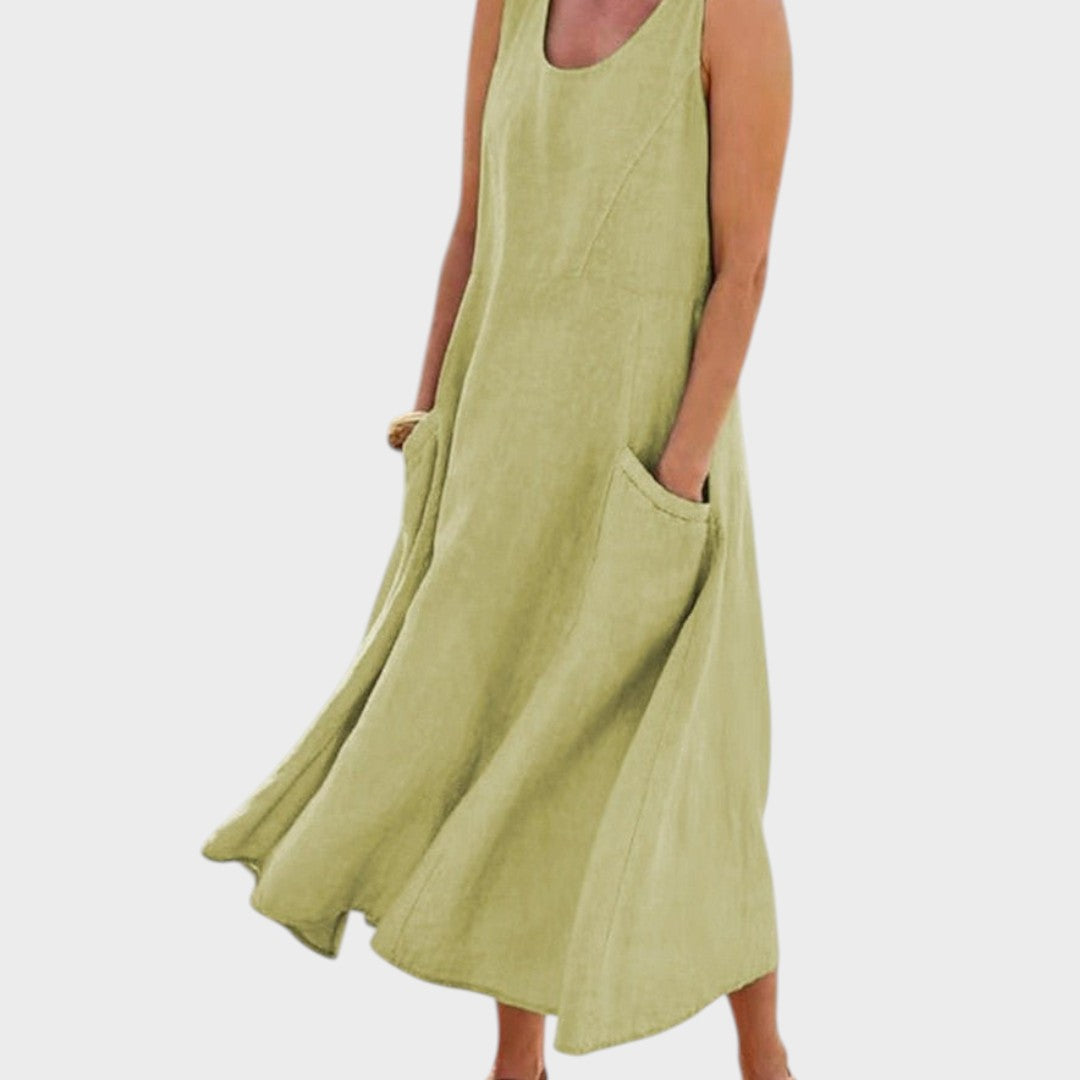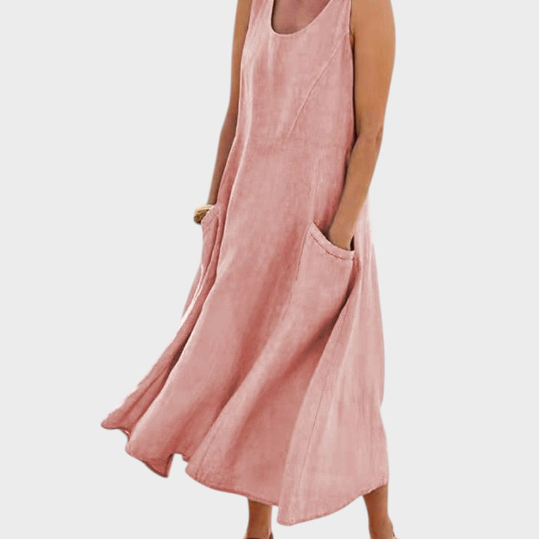 Obleka Paula je ustvarjena za tople dni in trenutke, ko želite izgledati ženstveno, hkrati pa se počutiti lahko in sproščeno. Zračen kroj zagotavlja svobodo gibanja in prijeten občutek čez ves dan. Idealna je za sprehode, neformalne srečanja ali potovanja.