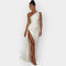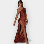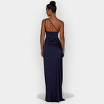 To oblačilo izžareva subtilno luksuznost z gladkim satenom in elegantno linijo. Idealno za večerne izhode in posebne priložnosti, ki zahtevajo izpopolnjenost in stil.