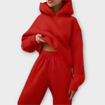 Ta komplet z oversized dukserico in hlačami visokega pasu je popolna definicija udobja s stilom. Idealno za dni sprostitve, potovanja ali tisti ležerni street look, združuje sodoben videz z udobnostjo, ki jo iščete. Mehka tekstura in sodoben kroj pretvarjata osnovno v bistveno.