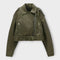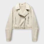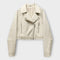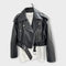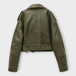 Moderna kratka usnjena jakna z pasom in rafinirano estetiko