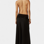 Drapiran halter izrez ustvarja nežno in laskavo padanje