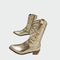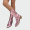 Ženske **kaubojke v metalik roza** barvi, ki pritegnejo poglede s svojim edinstvenim karakterjem. Imajo **bogat vezen vzorec** in stranski zadrgo za enostavno oblačenje, medtem ko nizka lesena peta zagotavlja udobje in stil pri vsakem vašem koraku. Idealne so za drzne street-style kombinacije in modne nastope, ki se izstopajo.
