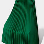 Impozantna in zračna, ta plisirana krila z visokim pasom in širokim krojem predstavljajo izjavno oblačilo za vsako garderobo. Idealna za stilne videze od jutra do večera, združuje gibanje, eleganco in brezčasni značaj.