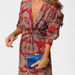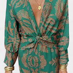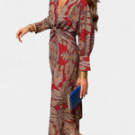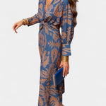Ema Maxi Obleka z V-Izrezom in Sprednjim Vozlom