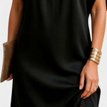 Preprosta, rafinirana in vedno elegantna, obleka Ena združuje čiste linije z vsestranskim krojem, ki se prilagaja vsaki priložnosti. Njena ravna silhueta naravno poudari postavo, medtem ko okrogli izrez in monokromatska zasnova prinašata klasičen videz, ki nikoli ne gre iz mode.