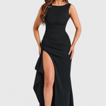Zasnovana, da očara, Obleka za Večer Ivana predstavlja sofisticirano eleganco. S svojo ozko silhueto, luksuznim satenastim zaključkom in dramatičnimi odprtimi hrbtom, je ta obleka polne dolžine popolna izbira za vstop. Visok razrez dodaja gibanje in privlačnost, kar jo naredi idealno za gala dogodke, formalne večere in trenutke na rdečem tepihu.
