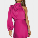 Jelena Mini Oblačilo z Draperijo na Enem Ramu