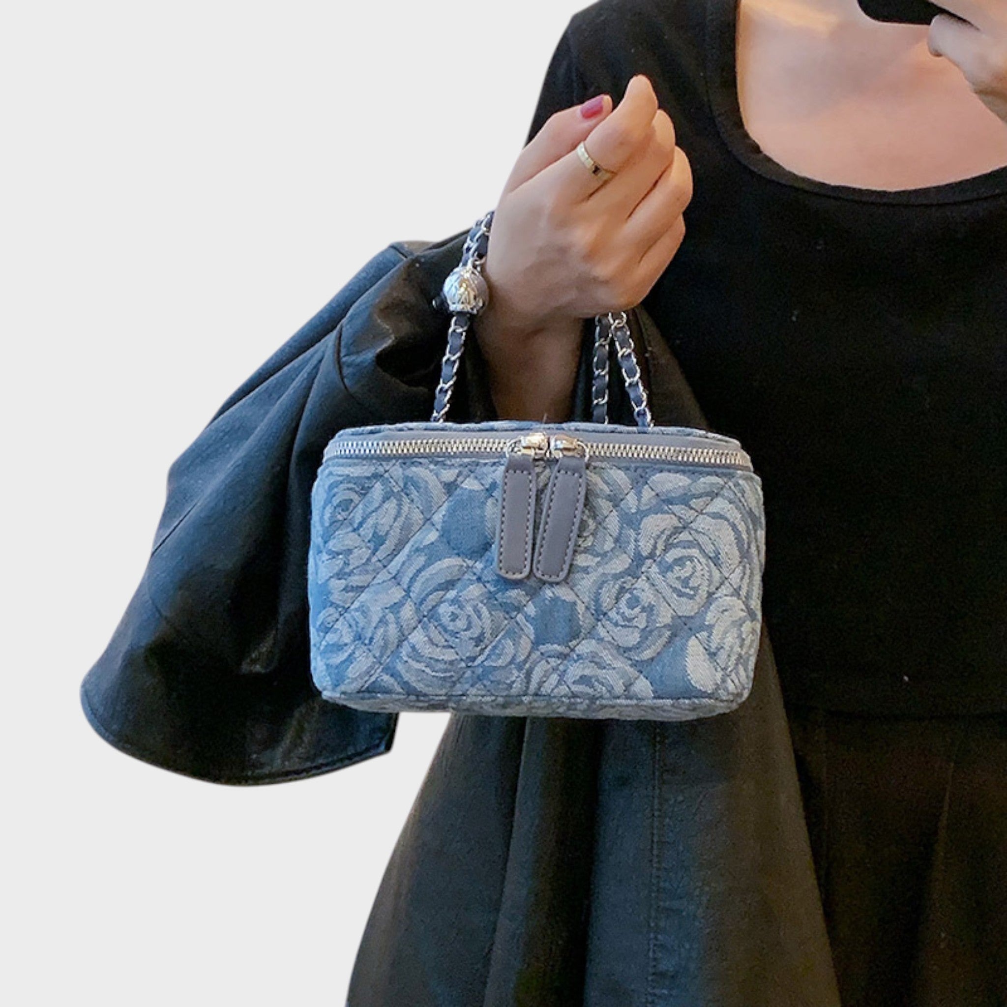 Ta torba je popolna izbira za tiste, ki imajo radi stil z romantičnim pridihom. Z reljefnim cvetličnim vzorcem in sofisticiranim tekstilnim zaključkom prinaša lahkoten, ustvarjalen in ženstven videz. Njen strukturiran oblik in ročaj s chainom prinašata ravnotežje med sproščenim in elegantnim, kar jo naredi za edinstven kos, ki izpostavlja vašo osebnost ob vsaki priložnosti.