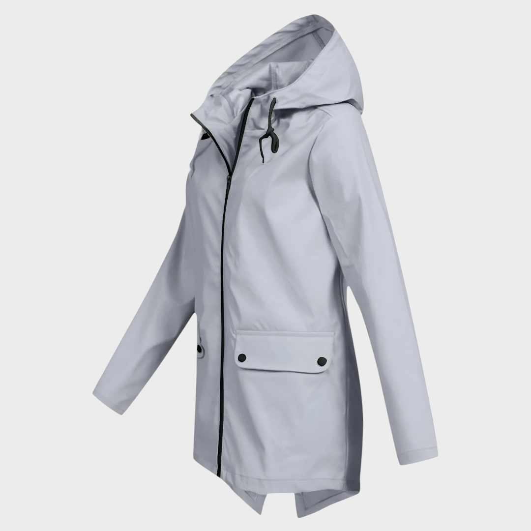 Ta vodoodporna jakna je zasnovana za tiste, ki ne odnehajo glede udobja in elegance, niti v najsivših dneh. S sodobnim in funkcionalnim dizajnom nudi učinkovito zaščito pred dežjem brez kompromisov pri lahkosti in svobodi gibanja.