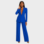 Ta sofisticiran komplet sako–hlače je idealna izbira za ženske, ki želijo pustiti močan vtis. Popoln kroj poudari postavo, medtem ko klasičen sako in elegantne hlače ustvarjajo videz, ki izraža prefinjenost in sodoben stil. Primeren je za poslovne sestanke, posebne priložnosti ali večerne izhode, ko želite zasvetiti.